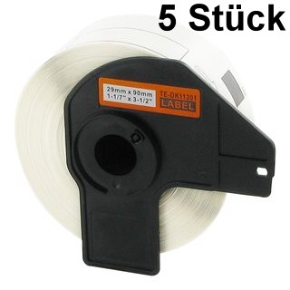 | 5 x kompatible Adressetiketten Brother (DK-11201), 29mm x 90mm, 400 Etiketten/Rolle, weiss, permanent