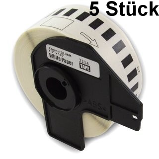 | 5 x kompatible Universal-Etiketten Brother (DK-22214), 12mm x 30,48m, 1 Rolle - 30,48 Meter, weiss, permanent